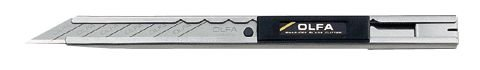 Celokovový řezač s automaticky blokovanou čepelí s úhlem 30°, plochá pojistka k posunu čepele, kovová spona na odlamování čepelí.