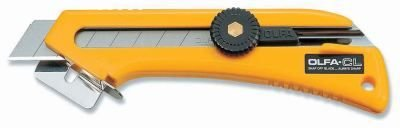 Řezač kartonů s pevnou opěrkou na vedení řezu, kulatá pojistka k posunu čepele, odstraňovač sponek.