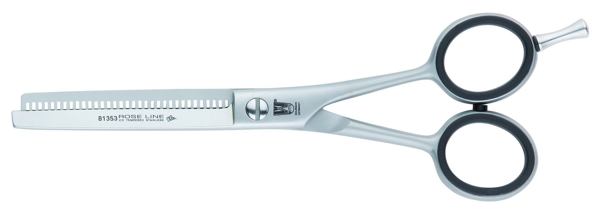 jsou vyrobeny ze šlechtěné podmražované oceli se saténovou úpravou rukojetí. Obě ramínka nůžek jsou spojena zapuštěným stavitelným šroubem. Afilační nůžky Rose Line 33 zubů a délku 5,5".