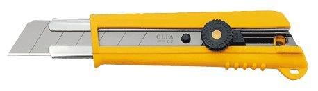 Velký řezač pro zvlášť tvrdé materiály s rukojetí z protiskluzové hmoty, odolné vůči kyselinám a acetonu, kulatá pojistka k posunu čepele