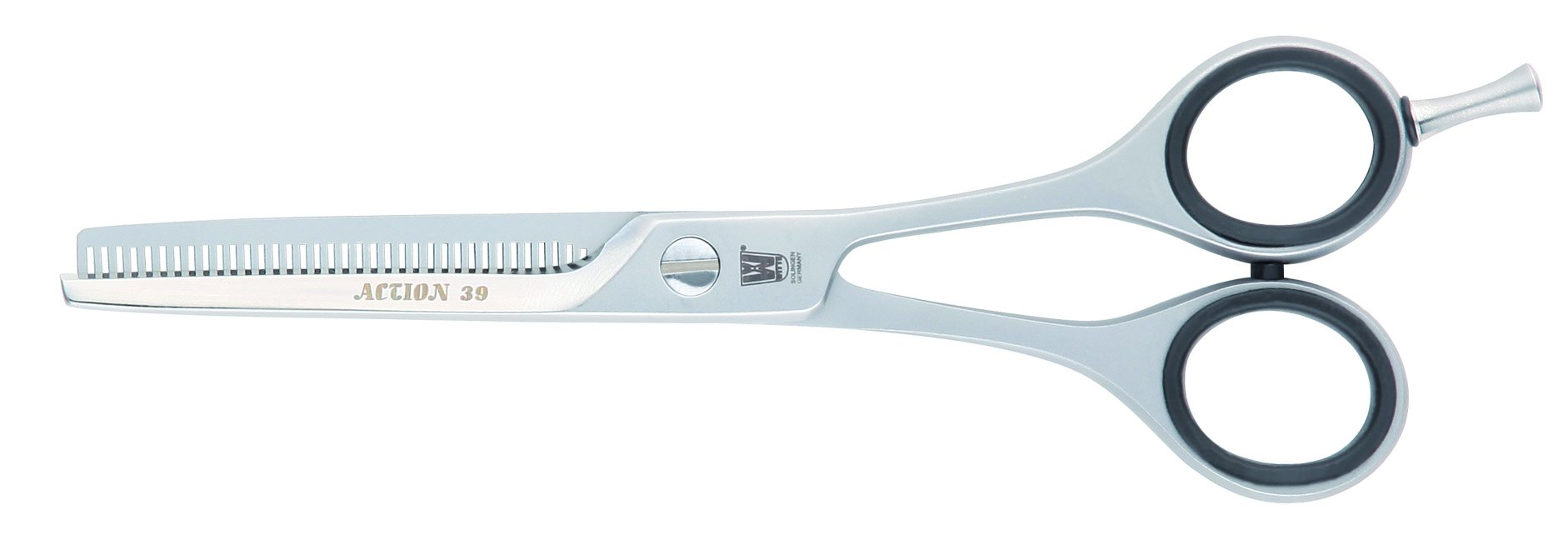jsou vyrobeny ze šlechtěné ložiskové oceli. Speciální oblý hladký brus a 39 zubů předurčuje tyto kadeřnické nůžky pro afilační střih. Nůžky mají leštěná ramínka a saténovou úpravu rukojetí. Jsou vybaveny malíkovou opěrkou a zapuštěným stavitelným šroubem.