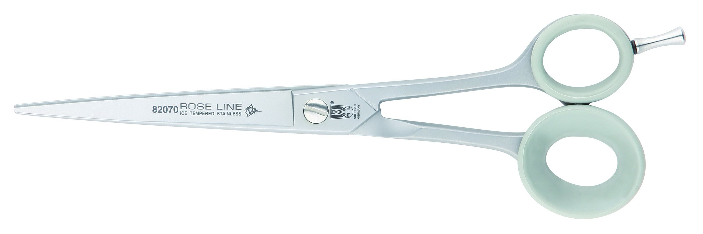 Profesionální kadeřnické nůžky na vlasy. Jsou vyrobeny z kvalitní nerezové oceli. Jedno ostří je hladké a druhé je s mikrozubem. Nůžky jsou vybaveny zapuštěným regulovatelným šroubem a malíkovou opěrkou. Celé nůžky o velikosti 7" mají saténovou povrchovou úpravu.