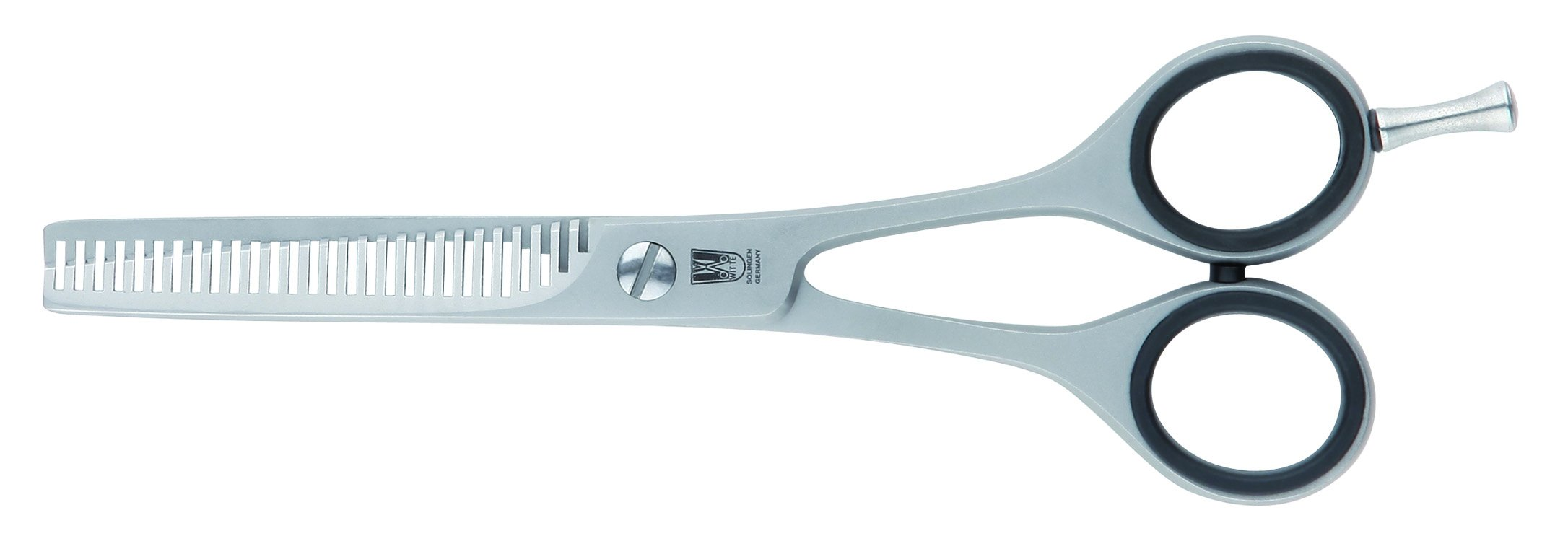 jsou vyrobeny ze šlechtěné podmražované oceli se saténovou úpravou rukojetí. Obě ramínka nůžek jsou spojena zapuštěným stavitelným šroubem. Afilační nůžky Rose Line 28 zubů a délku 5,25".