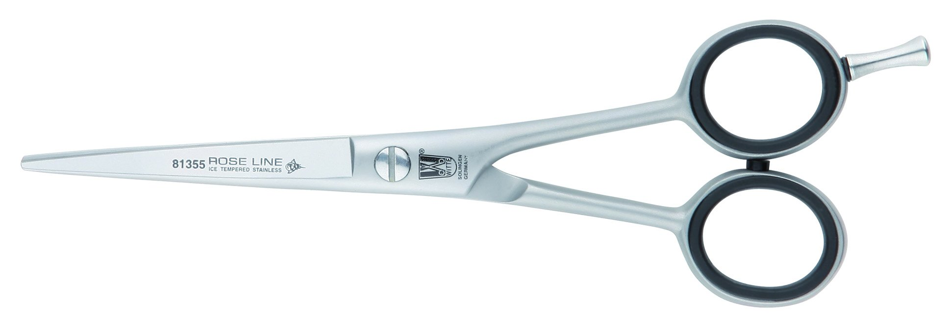 jsou vyrobeny ze šlechtěné podmražované oceli a délkou 5,5". Ramínka nůžek jsou leštěná se saténovou úpravou rukojetí. Jedno ramínko je vybaveno mikrozoubkem.