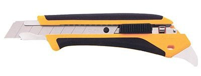 Řezač s protiskluzovou gumou na rukojeti, která je odolná vůči kyselině a acetonu, plochá pojistka k posunu čepele, automaticky blokovaná čepel, kovová víceúčelová koncovka.