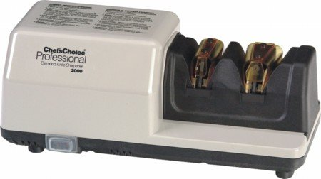 El ostřič CC 2000 se těší velké oblibě díky použití systému dvoustupňového broušení, kvalitnímu zpracování a dlouhé životnosti. Ostřič je určen pro profesionální provozy. Je schopen brousit všechny druhy nožů a ostří. 1. diamantová fáze je určena k broušení nože a 2. keramická fáze k celkovému zaleštění a zahlazení ostří. Všechny fáze jsou uloženy v pevném segmentu, který je jednoduše vyjímatelný a lze ho celý mýt v myčce.Ostří nabroušené stupňovaným broušením se tupí daleko pomaleji než broušené běžným způsobem.