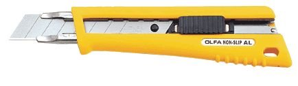 Řezač s pohodlnou rukojetí z protiskluzové hmoty odolné vůči acetonu a kyselinám, plochá pojistka k posunu čepele, automaticky blokovaná čepel.