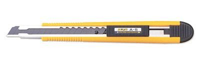 Řezač s jednosměrným blokováním čepele (pouze při řezu tahem k sobě) s plochá pojistka, plastová odlamovací spona.