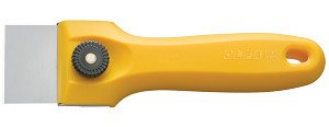 Škrabka s tvarovanou rukojetí a výměnnou čepelí. Šířka 45 mm